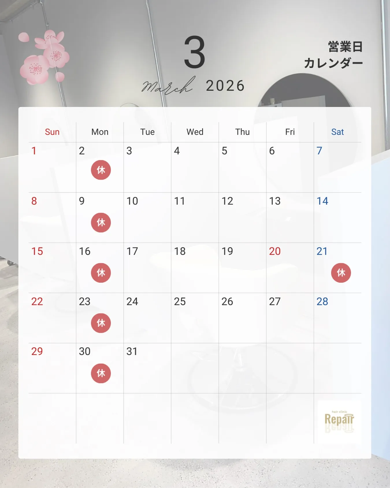 3月でhair clinic Repair 無事に1周年を迎えます。
